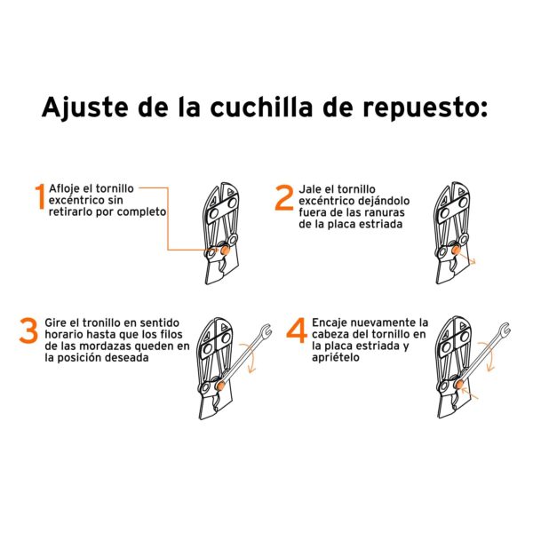 • Tornillos excéntricos, para un ajuste correcto de las cuchillas