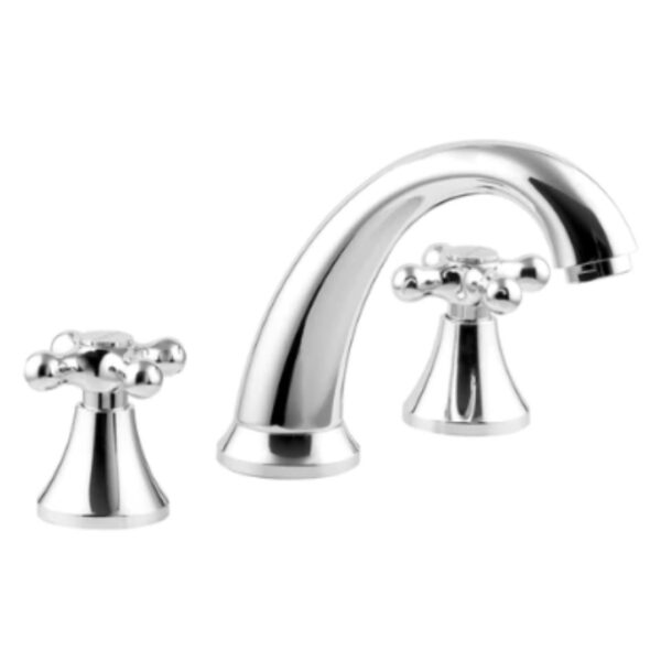 Llave mezclador 8″ para lavamanos para agua fría y caliente, con cuerpo y manijas metálicas.
