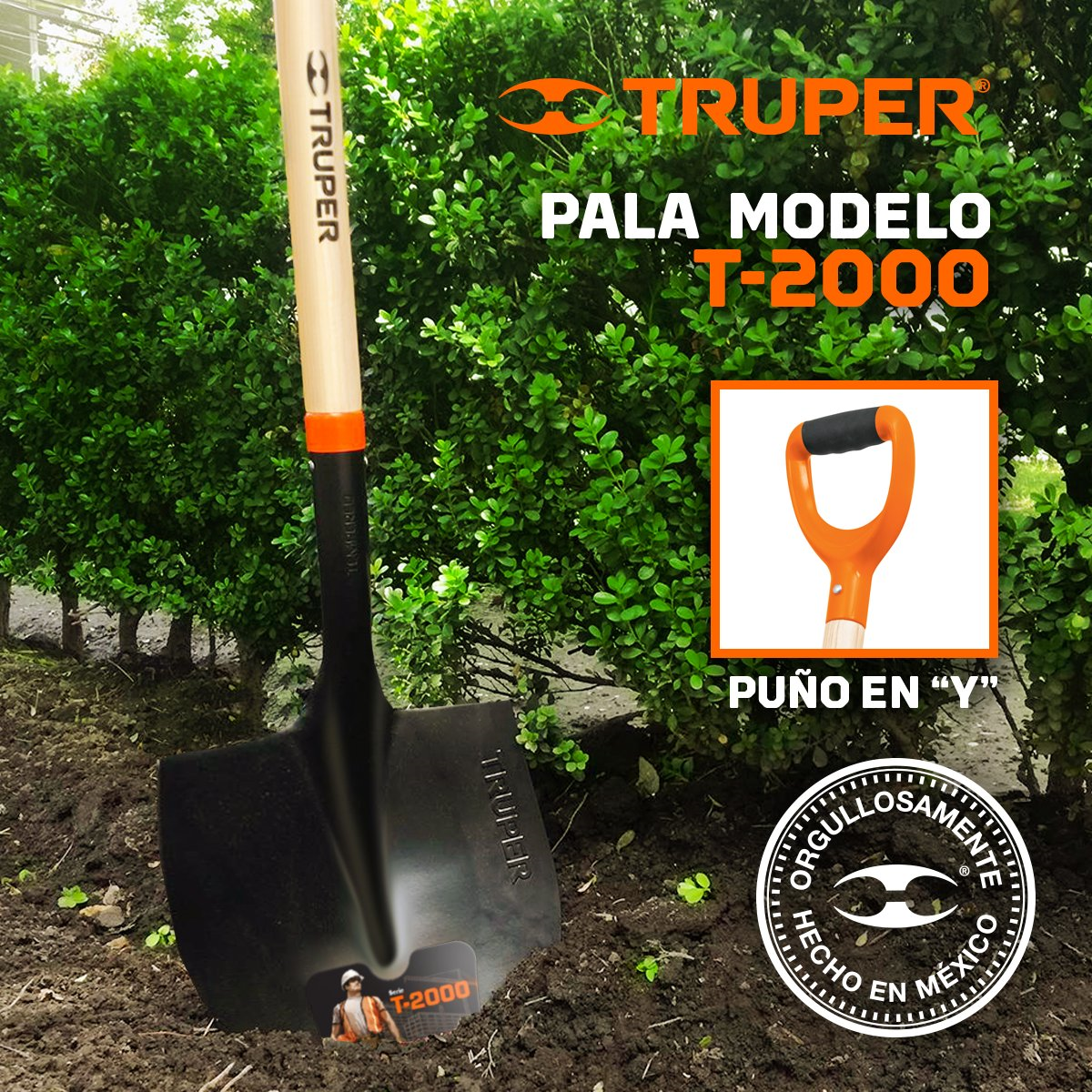 Pala redonda para trabajo pesado con cabo largo. Especial para realizar mezcla en obra y también para trabajos agrícolas. Ancho de 23 cms y largo de cabeza 50 cms. Largo total 1.44 mts.